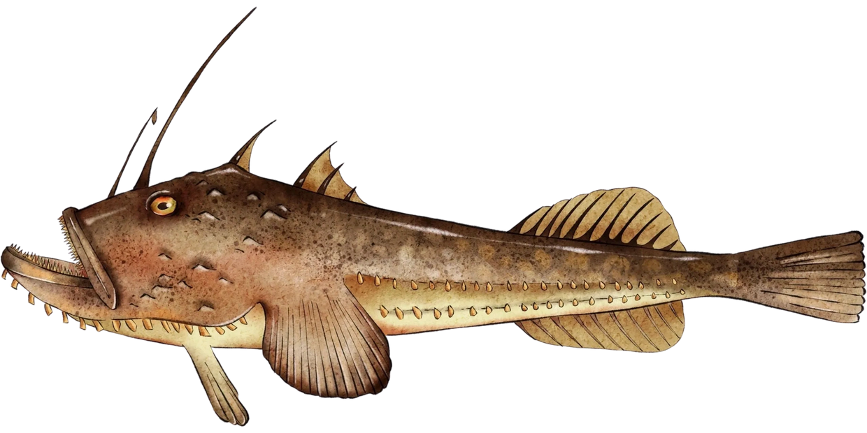 Also known as goosefish, fishing-frog, frog-fish, sea devil, and bellyfish